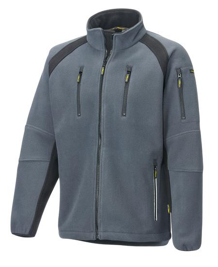 Verlängertes Rückenteil. 2 Seitentaschen mit Reissverschluss und Reflexstreifen. 2 Brusttaschen mit Reissverschluss. Ärmeltasche mit Reissverschluss.