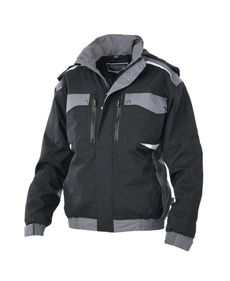 Körperteil und Ärmel mit Wattierung. Kapuze im Kragen verstaubar. 2 aufgesetzte Brusttaschen mit 2 seitlichen RV-Taschen. 2 Seitentaschen mit RV. Schwarzer Reissverschluss mit Reflexstreifen an Aussentaschen.