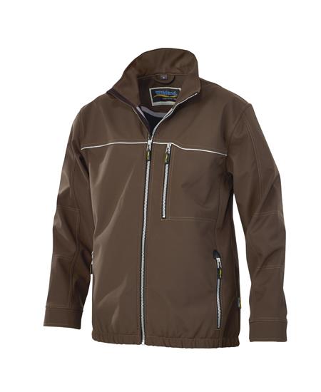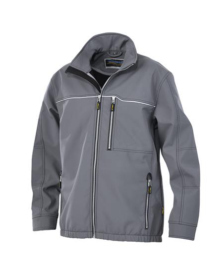 Frontverschluss mit sichtbarem Reissverschluss und Kinnschutz. Aufgesetzte Brusttasche links mit vertikalem Reissverschluss. Zwei vertikale Taschen unten mit Zip-Garage in schwarzer Farbe. Zwei innere Taschen aus starkem Trikot-Stoff. Elastisches Antirutsch-Gummiband am Bund innen. Innere Ärmelabschlüsse aus elastischem Trikot-Stoff. Reflexstreifen entlang der Brustteilungsnaht und an den vertikalen Rückennähten.