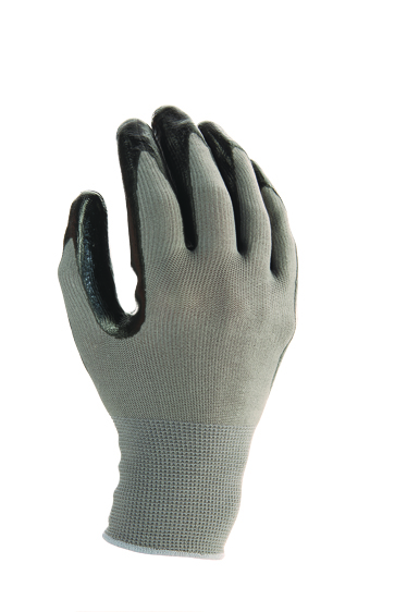 Nahtlose Nylon-Strickhandschuh mit leichter Anti-Rutsch-Beschichtung.