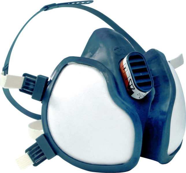 Die kompakte 3M Atemschutzmaske ist mit zwei großen Aktivkohlefiltern